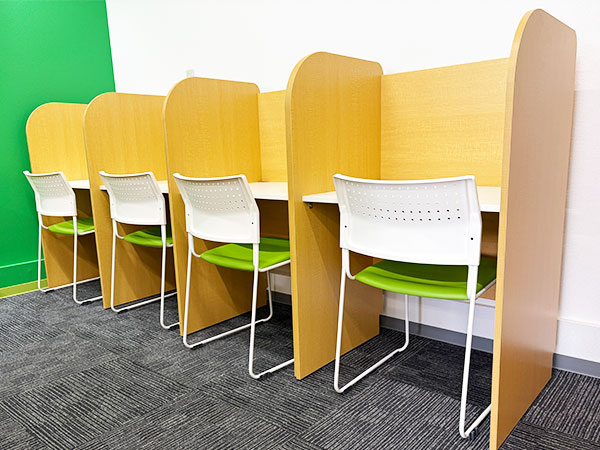 授業の前後はもちろん、授業がない日もご利用いただける自習スペースを設けています。また、保護者さまとは、保護者さまミーティング(面談)のお時間をいただき、お子さまの学習や受験について、計画づくりからサポートしています。