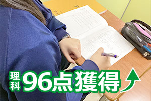- 1年生から続けてきた生徒会活動と勉強の両立が難しく、特に苦手な数学は点数が上がらないままでしたが、塾で苦手教科を中心に効率よく学習できたことで、他教科の学習時間も確保でき、定期テストでは五教科の点数が以前よりも上がりました。